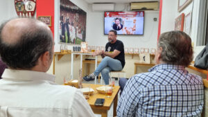 Visita del jugador y leyenda del Sevilla FC Marcelo Campanal a nuestra caseta de Feria.
